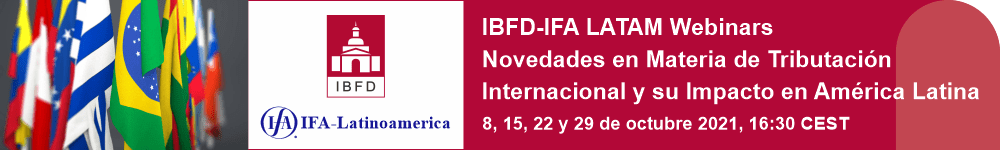 El Comité Regional Latinoamericano de IFA (IFA LATAM) en coordinación con el International Bureau of Fiscal Documentation (IBFD) llevarán a cabo una serie de 4 Webinars sobre «Novedades en Materia de Tributación Internacional y su Impacto en América Latina» que se realizarán los días viernes 8, 15, 22 y 29 de octubre de 2021, a partir de las 16:30 horas CEST (9:30 horas de Perú), todos en idioma español.